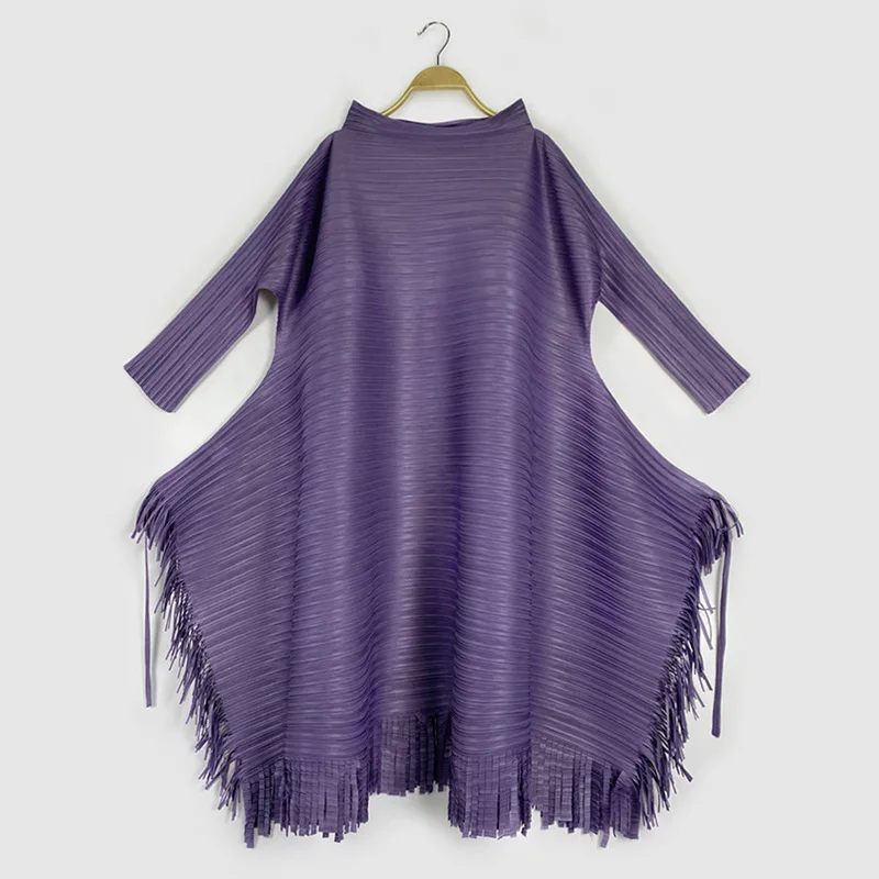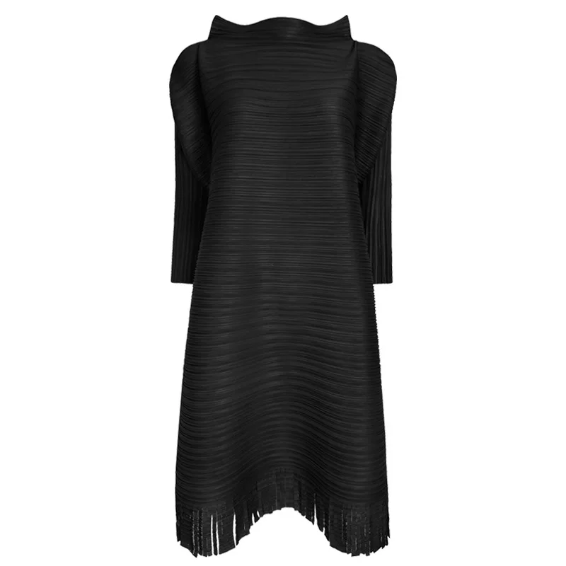 TIANPEI Pleated 2026 Spring New European American Fashion Design Tassel Age Reducing Solid Loose miyake pleated Women's Dress